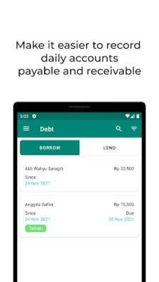 Designed to record accounts payable and receivable. This application is used to make it easier to record daily accounts payable, equipped with installment, history, labeling, currency, theme and backup restore features.