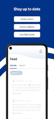 DISTRICT UPDATES In the Live Feed is where you’ll find updates from the administration about what’s going on in the district right now. Whether that’s celebrating a student’s success, or reminding you about an upcoming deadline.